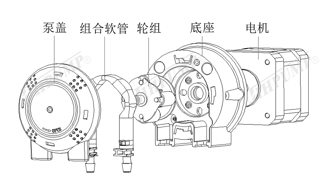 ■2滾輪和4滾輪可選,2輪時(shí)軟管壽命更長(zhǎng)、流量更大,4輪時(shí)輸送脈沖更小