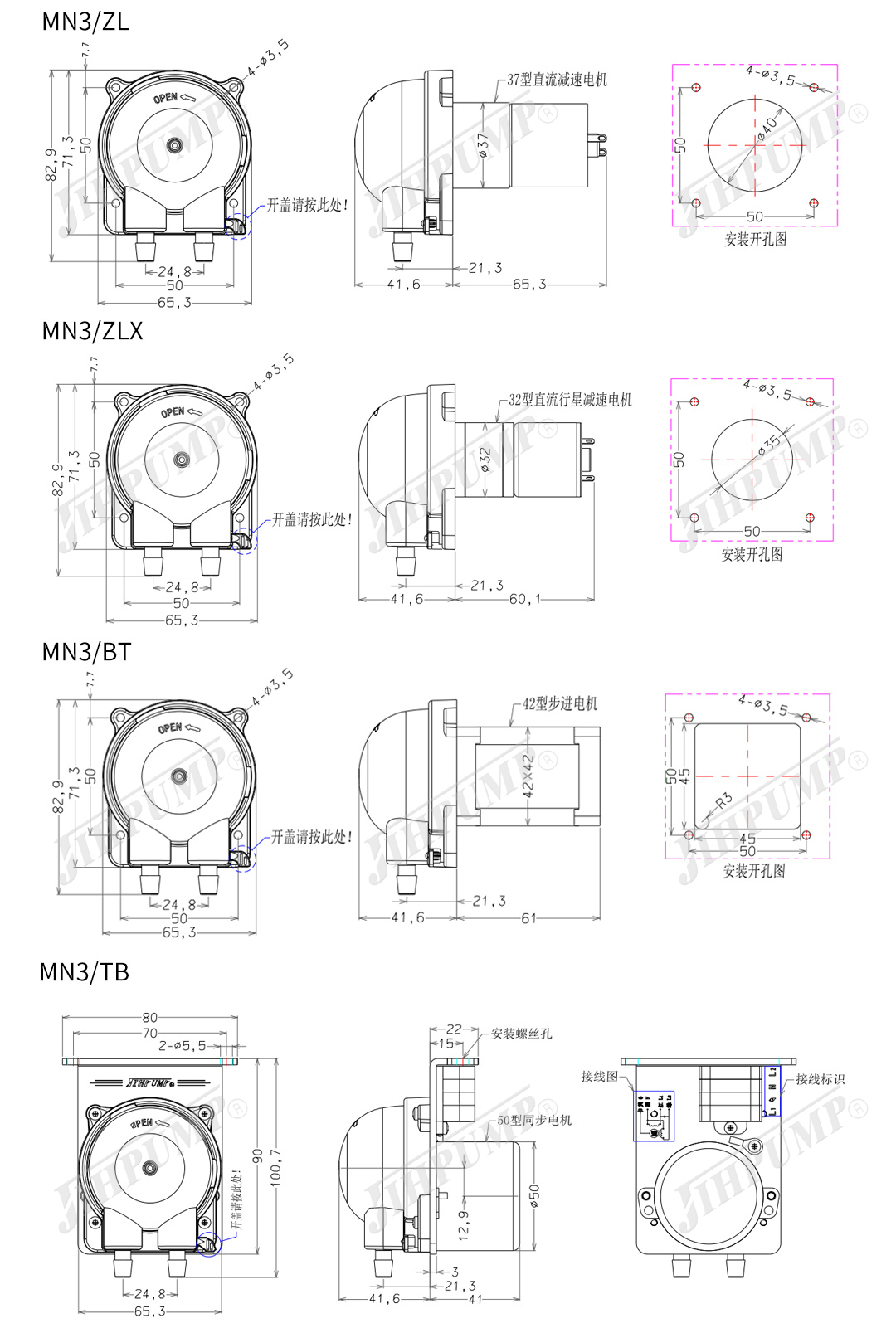 ■該款蠕動(dòng)泵可適配普通直流、直流行星、步進(jìn)、同步等多種驅(qū)動(dòng)電機(jī)