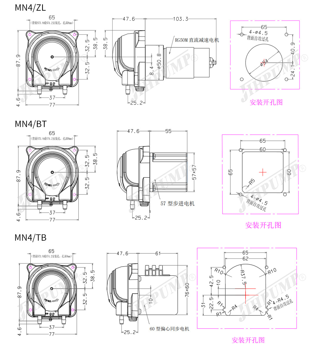 ■該款蠕動泵可適配普通直流、直流行星、步進、同步等多種驅動電機