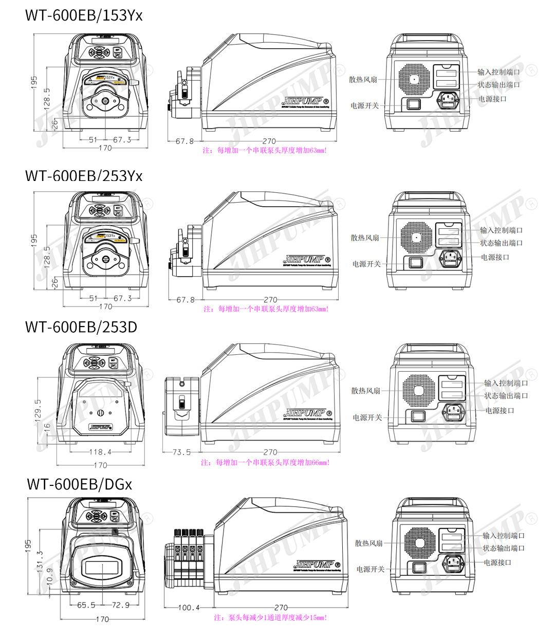 ■產(chǎn)品適配153Yx/253Yx/253D/DGx等多種蠕動泵頭,多種流量可選擇