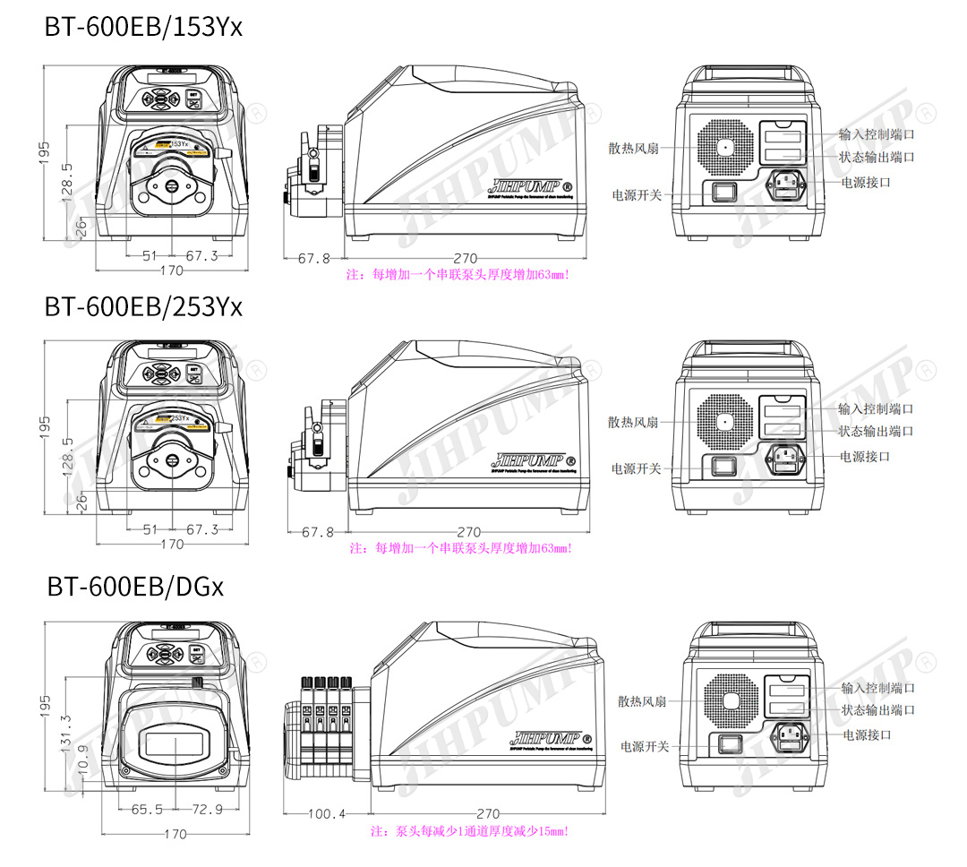 ■產(chǎn)品適配 153Yx/253Yx/DGx等多種蠕動(dòng)泵頭,多種流量可選擇