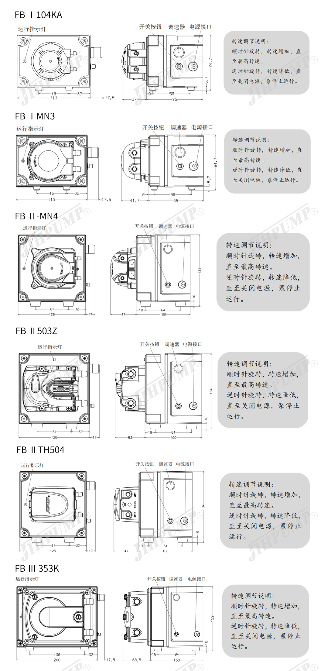 FB系列蠕動泵產(chǎn)品型號及對應流量