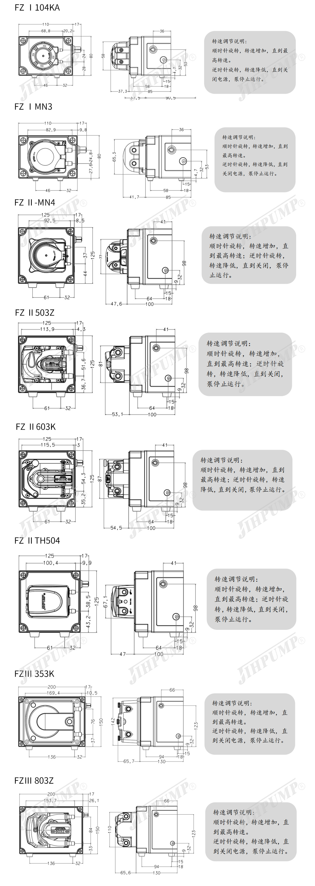 FZ系列蠕動泵產(chǎn)品型號及流量范圍