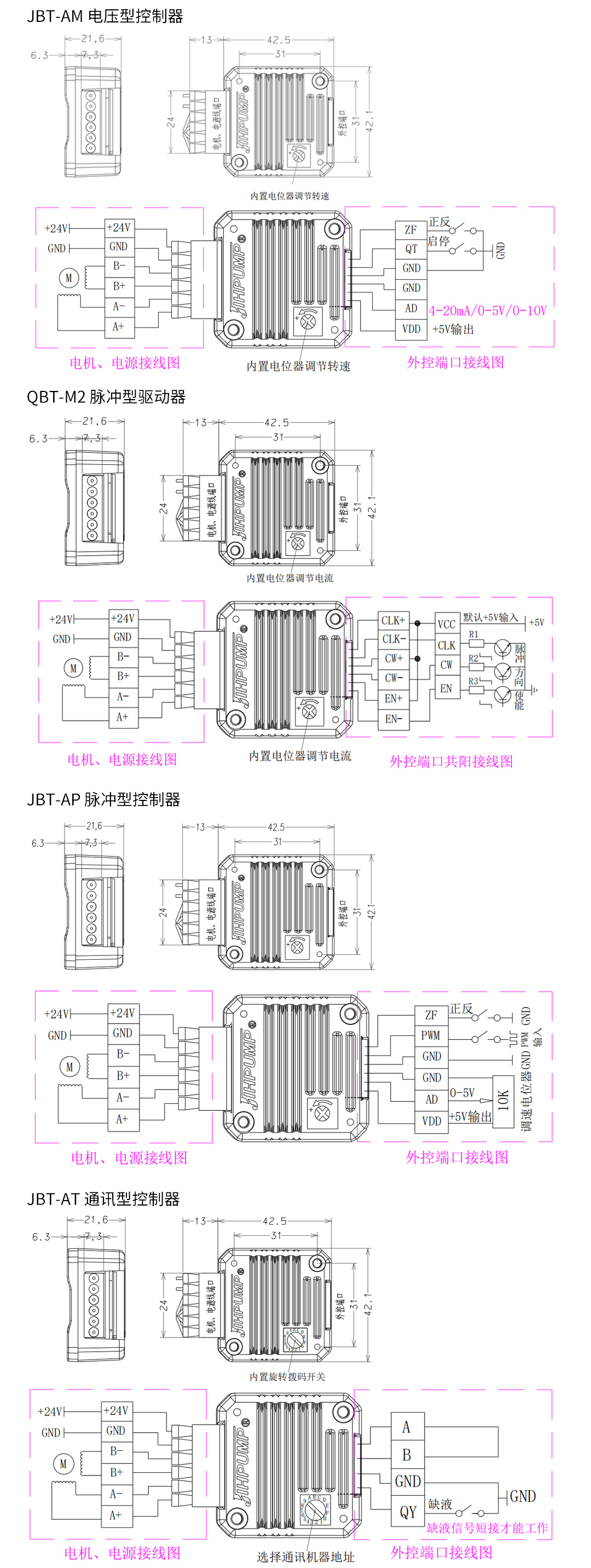 ■具有 JBT-AM 電壓型、JBT-AT 通訊型、JBT-AP 和 QBT-M2 脈沖型四種不同功能的控制驅(qū)動器