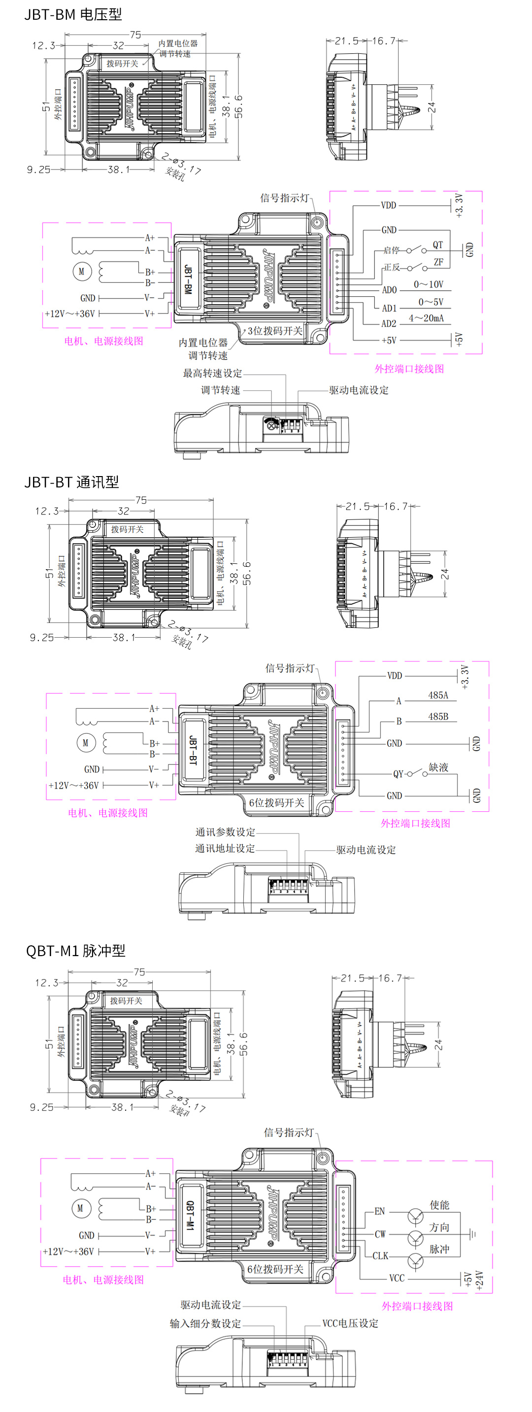■具有 JBT-BM 電壓型、JBT-BT 通訊型、QBT-M1 脈沖型等不同功能的控制器供用戶選擇